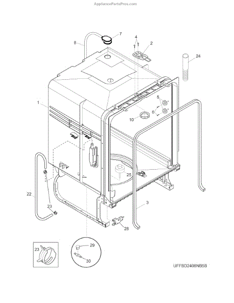 The Water Inlet Tubing is an OEM part for Frigidaire dishwashers. This tubing allows water to flow from the home's water supply lines into the dishwasher. Properly functioning inlet tubing is essential for supplying water to fill cycles and operate through different wash and rinse cycles. Causes of a bad water inlet tubing can include mineral or sediment build up inside the tubing restricting water flow, splitting or cracking of the tubing material from stress or age, or damage from sharp objects or wear and tear. Symptoms of a bad water inlet tubing include:
