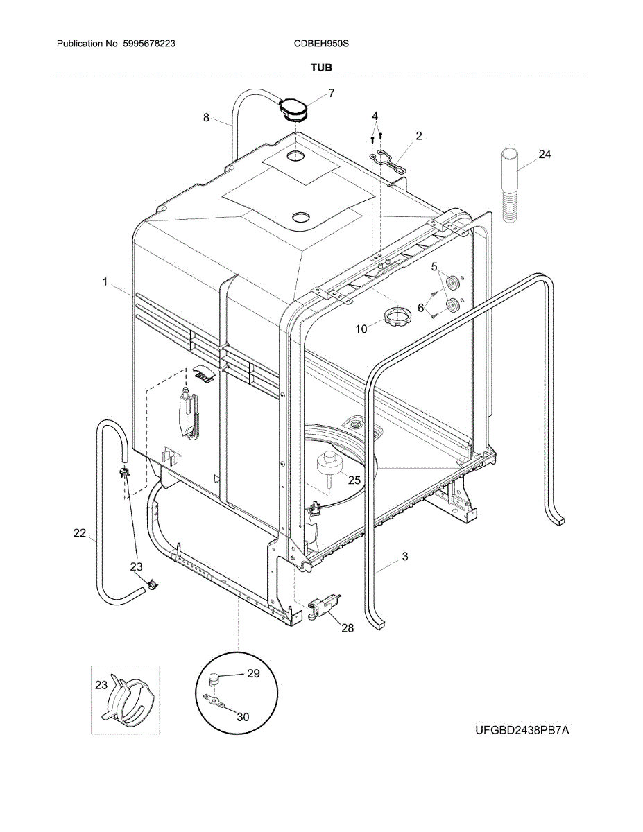 Secures dishwasher hoses to prevent leaks and water damage. Replace if loose, cracked, or leaking. Verify fit with your model number before ordering.
