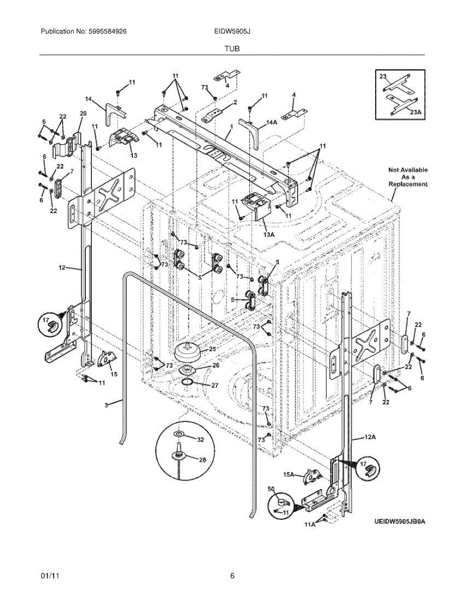 Mounting bracket for dishwasher installation. Secures unit to cabinet or countertop. Replace if bracket is bent, cracked, or missing for proper support.