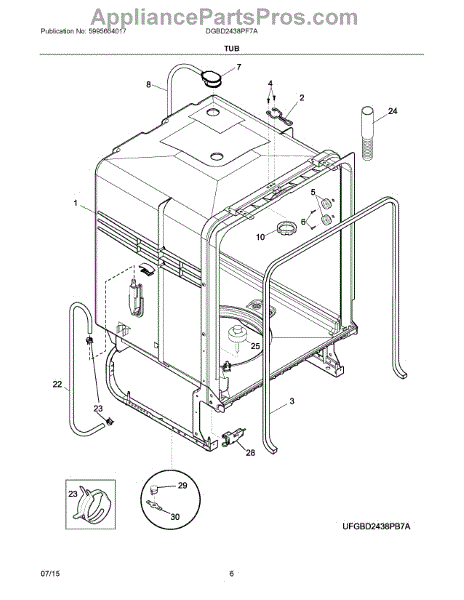 Symptoms of a faulty Dishwasher Tub Gasket include: