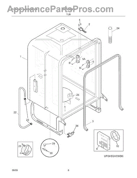 Symptoms of a faulty Dishwasher Tub Gasket include: