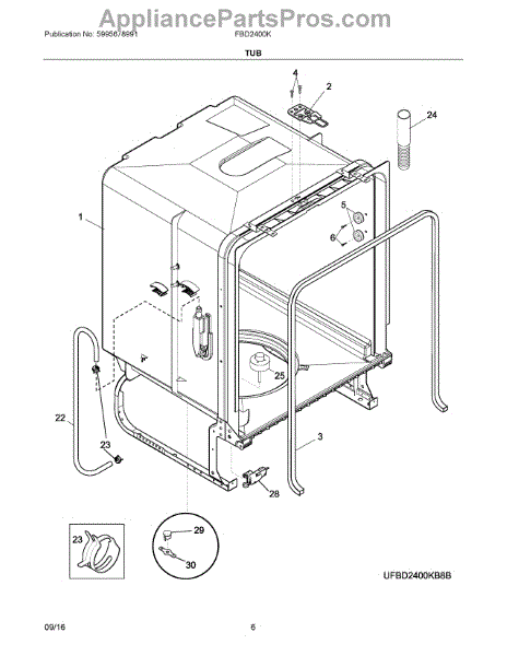 Secures dishwasher hoses to prevent leaks and water damage. Replace if loose, cracked, or leaking. Verify fit with your model number before ordering.