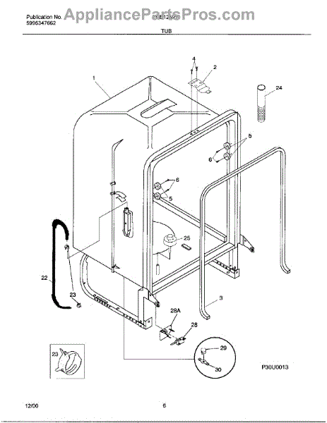 The Dishwasher Tub Gasket is an OEM replacement part for Frigidaire dishwashers. It seals the gap between the dishwasher tub and the door, preventing water leaks and ensuring efficient operation. This tub gasket is typically made of durable rubber or silicone material, designed to withstand the heat, moisture, and chemicals involved in the dishwashing process
