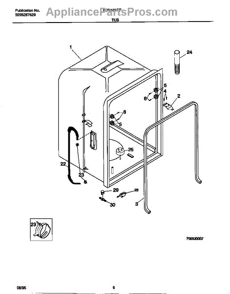 The Water Inlet Tubing is an OEM part for Frigidaire dishwashers. This tubing allows water to flow from the home's water supply lines into the dishwasher. Properly functioning inlet tubing is essential for supplying water to fill cycles and operate through different wash and rinse cycles. Causes of a bad water inlet tubing can include mineral or sediment build up inside the tubing restricting water flow, splitting or cracking of the tubing material from stress or age, or damage from sharp objects or wear and tear. Symptoms of a bad water inlet tubing include: