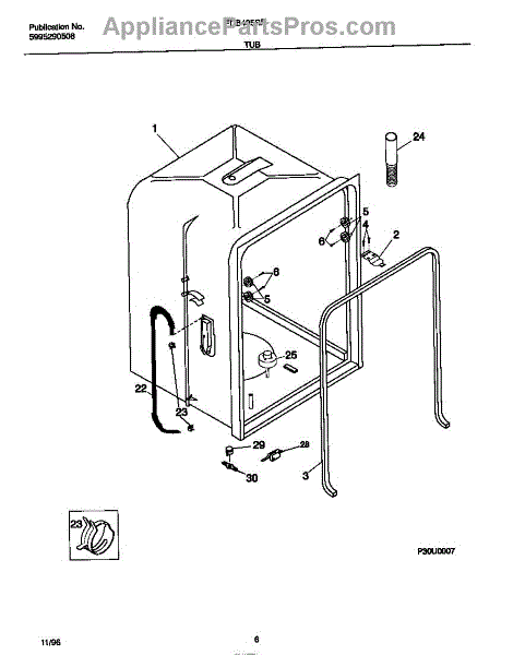 The Dishwasher Tub Gasket is an OEM replacement part for Frigidaire dishwashers. It seals the gap between the dishwasher tub and the door, preventing water leaks and ensuring efficient operation. This tub gasket is typically made of durable rubber or silicone material, designed to withstand the heat, moisture, and chemicals involved in the dishwashing process