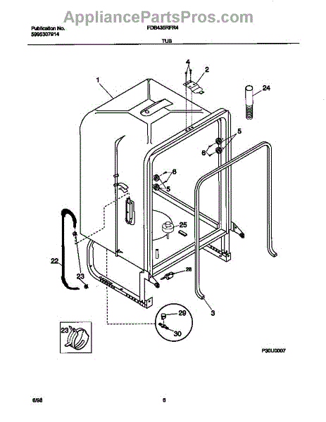 The Dishwasher Tub Gasket is an OEM replacement part for Frigidaire dishwashers. It seals the gap between the dishwasher tub and the door, preventing water leaks and ensuring efficient operation. This tub gasket is typically made of durable rubber or silicone material, designed to withstand the heat, moisture, and chemicals involved in the dishwashing process