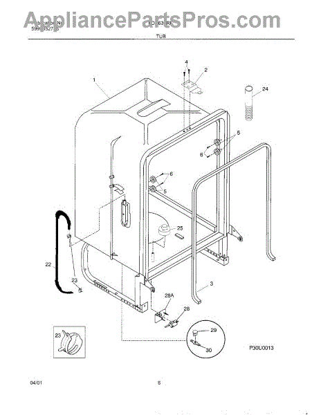 The Dishwasher Tub Gasket is an OEM replacement part for Frigidaire dishwashers. It seals the gap between the dishwasher tub and the door, preventing water leaks and ensuring efficient operation. This tub gasket is typically made of durable rubber or silicone material, designed to withstand the heat, moisture, and chemicals involved in the dishwashing process