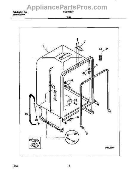 The Dishwasher Tub Gasket is an OEM replacement part for Frigidaire dishwashers. It seals the gap between the dishwasher tub and the door, preventing water leaks and ensuring efficient operation. This tub gasket is typically made of durable rubber or silicone material, designed to withstand the heat, moisture, and chemicals involved in the dishwashing process