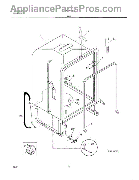 The Dishwasher Tub Gasket is an OEM replacement part for Frigidaire dishwashers. It seals the gap between the dishwasher tub and the door, preventing water leaks and ensuring efficient operation. This tub gasket is typically made of durable rubber or silicone material, designed to withstand the heat, moisture, and chemicals involved in the dishwashing process