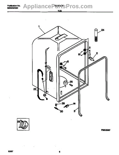 The Dishwasher Tub Gasket is an OEM replacement part for Frigidaire dishwashers. It seals the gap between the dishwasher tub and the door, preventing water leaks and ensuring efficient operation. This tub gasket is typically made of durable rubber or silicone material, designed to withstand the heat, moisture, and chemicals involved in the dishwashing process