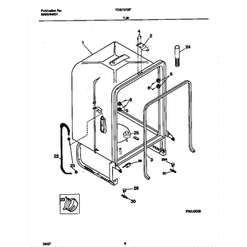 The Water Inlet Tubing is an OEM part for Frigidaire dishwashers. This tubing allows water to flow from the home's water supply lines into the dishwasher. Properly functioning inlet tubing is essential for supplying water to fill cycles and operate through different wash and rinse cycles. Causes of a bad water inlet tubing can include mineral or sediment build up inside the tubing restricting water flow, splitting or cracking of the tubing material from stress or age, or damage from sharp objects or wear and tear. Symptoms of a bad water inlet tubing include: