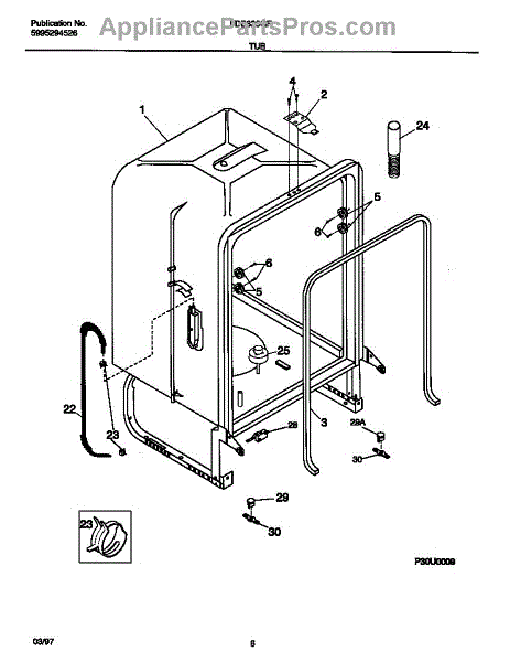 The Dishwasher Tub Gasket is an OEM replacement part for Frigidaire dishwashers. It seals the gap between the dishwasher tub and the door, preventing water leaks and ensuring efficient operation. This tub gasket is typically made of durable rubber or silicone material, designed to withstand the heat, moisture, and chemicals involved in the dishwashing process