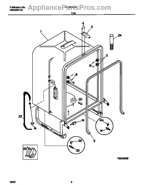 The Water Inlet Tubing is an OEM part for Frigidaire dishwashers. This tubing allows water to flow from the home's water supply lines into the dishwasher. Properly functioning inlet tubing is essential for supplying water to fill cycles and operate through different wash and rinse cycles. Causes of a bad water inlet tubing can include mineral or sediment build up inside the tubing restricting water flow, splitting or cracking of the tubing material from stress or age, or damage from sharp objects or wear and tear. Symptoms of a bad water inlet tubing include: