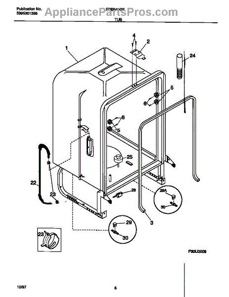 The Dishwasher Tub Gasket is an OEM replacement part for Frigidaire dishwashers. It seals the gap between the dishwasher tub and the door, preventing water leaks and ensuring efficient operation. This tub gasket is typically made of durable rubber or silicone material, designed to withstand the heat, moisture, and chemicals involved in the dishwashing process