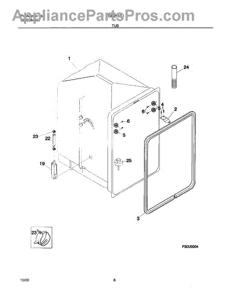 The Dishwasher Tub Gasket is an OEM replacement part for Frigidaire dishwashers. It seals the gap between the dishwasher tub and the door, preventing water leaks and ensuring efficient operation. This tub gasket is typically made of durable rubber or silicone material, designed to withstand the heat, moisture, and chemicals involved in the dishwashing process