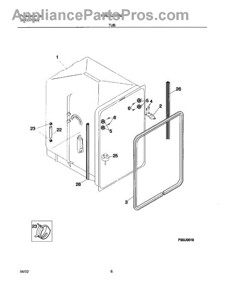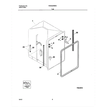 The Dishwasher Tub Gasket is an OEM replacement part for Frigidaire dishwashers. It seals the gap between the dishwasher tub and the door, preventing water leaks and ensuring efficient operation. This tub gasket is typically made of durable rubber or silicone material, designed to withstand the heat, moisture, and chemicals involved in the dishwashing process