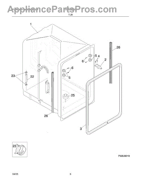 The Dishwasher Tub Gasket is an OEM replacement part for Frigidaire dishwashers. It seals the gap between the dishwasher tub and the door, preventing water leaks and ensuring efficient operation. This tub gasket is typically made of durable rubber or silicone material, designed to withstand the heat, moisture, and chemicals involved in the dishwashing process