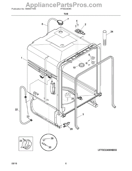 The Water Inlet Tubing is an OEM part for Frigidaire dishwashers. This tubing allows water to flow from the home's water supply lines into the dishwasher. Properly functioning inlet tubing is essential for supplying water to fill cycles and operate through different wash and rinse cycles. Causes of a bad water inlet tubing can include mineral or sediment build up inside the tubing restricting water flow, splitting or cracking of the tubing material from stress or age, or damage from sharp objects or wear and tear. Symptoms of a bad water inlet tubing include: