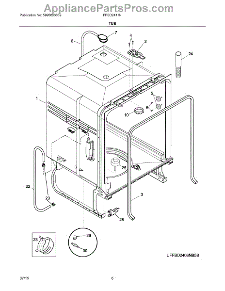 The Dishwasher Tub Gasket is an OEM replacement part for Frigidaire dishwashers. It seals the gap between the dishwasher tub and the door, preventing water leaks and ensuring efficient operation. This tub gasket is typically made of durable rubber or silicone material, designed to withstand the heat, moisture, and chemicals involved in the dishwashing process