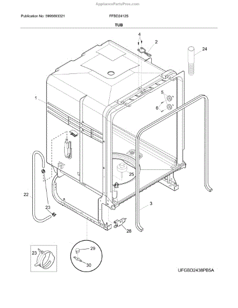The Dishwasher Tub Gasket is an OEM replacement part for Frigidaire dishwashers. It seals the gap between the dishwasher tub and the door, preventing water leaks and ensuring efficient operation. This tub gasket is typically made of durable rubber or silicone material, designed to withstand the heat, moisture, and chemicals involved in the dishwashing process