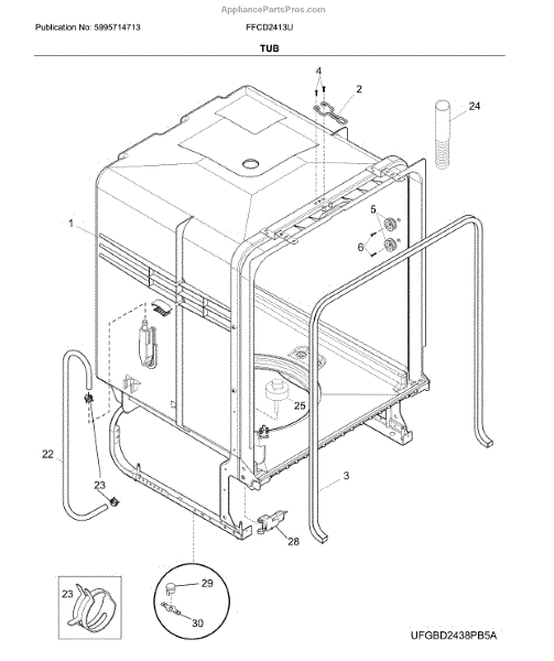 The Dishwasher Tub Gasket is an OEM replacement part for Frigidaire dishwashers. It seals the gap between the dishwasher tub and the door, preventing water leaks and ensuring efficient operation. This tub gasket is typically made of durable rubber or silicone material, designed to withstand the heat, moisture, and chemicals involved in the dishwashing process