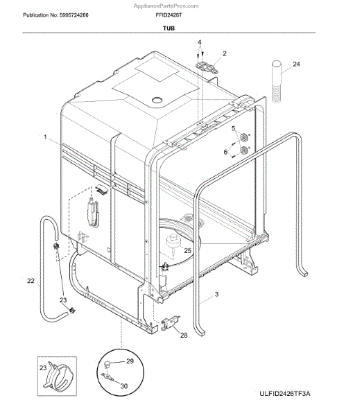 The Dishwasher Tub Gasket is an OEM replacement part for Frigidaire dishwashers. It seals the gap between the dishwasher tub and the door, preventing water leaks and ensuring efficient operation. This tub gasket is typically made of durable rubber or silicone material, designed to withstand the heat, moisture, and chemicals involved in the dishwashing process