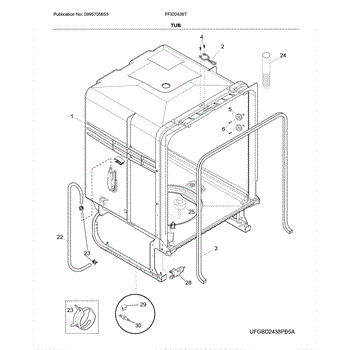 The Dishwasher Tub Gasket is an OEM replacement part for Frigidaire dishwashers. It seals the gap between the dishwasher tub and the door, preventing water leaks and ensuring efficient operation. This tub gasket is typically made of durable rubber or silicone material, designed to withstand the heat, moisture, and chemicals involved in the dishwashing process