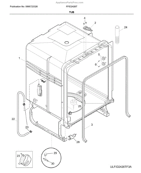 The Dishwasher Tub Gasket is an OEM replacement part for Frigidaire dishwashers. It seals the gap between the dishwasher tub and the door, preventing water leaks and ensuring efficient operation. This tub gasket is typically made of durable rubber or silicone material, designed to withstand the heat, moisture, and chemicals involved in the dishwashing process