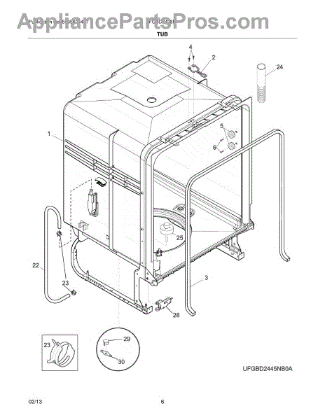 Symptoms of a faulty Dishwasher Tub Gasket include: