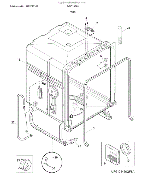 The Dishwasher Tub Gasket is an OEM replacement part for Frigidaire dishwashers. It seals the gap between the dishwasher tub and the door, preventing water leaks and ensuring efficient operation. This tub gasket is typically made of durable rubber or silicone material, designed to withstand the heat, moisture, and chemicals involved in the dishwashing process