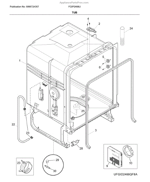 The Dishwasher Tub Gasket is an OEM replacement part for Frigidaire dishwashers. It seals the gap between the dishwasher tub and the door, preventing water leaks and ensuring efficient operation. This tub gasket is typically made of durable rubber or silicone material, designed to withstand the heat, moisture, and chemicals involved in the dishwashing process