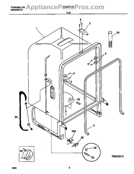 The Dishwasher Tub Gasket is an OEM replacement part for Frigidaire dishwashers. It seals the gap between the dishwasher tub and the door, preventing water leaks and ensuring efficient operation. This tub gasket is typically made of durable rubber or silicone material, designed to withstand the heat, moisture, and chemicals involved in the dishwashing process