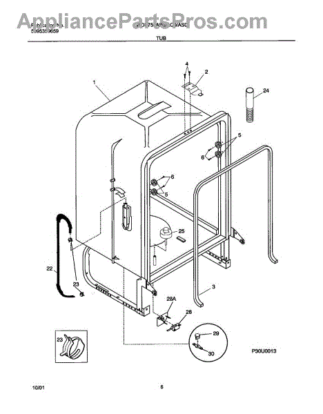 The Dishwasher Tub Gasket is an OEM replacement part for Frigidaire dishwashers. It seals the gap between the dishwasher tub and the door, preventing water leaks and ensuring efficient operation. This tub gasket is typically made of durable rubber or silicone material, designed to withstand the heat, moisture, and chemicals involved in the dishwashing process