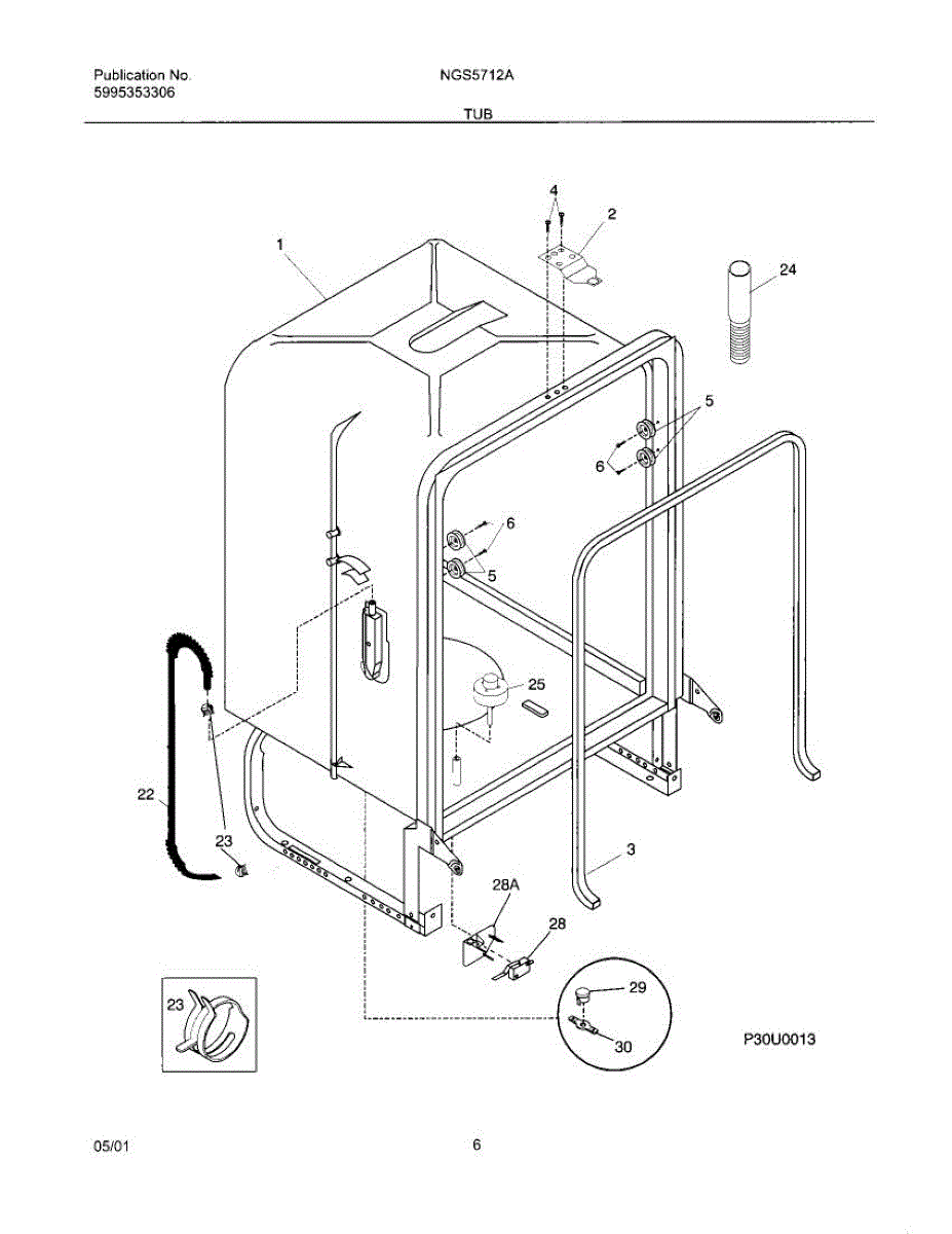 The Dishwasher Tub Gasket is an OEM replacement part for Frigidaire dishwashers. It seals the gap between the dishwasher tub and the door, preventing water leaks and ensuring efficient operation. This tub gasket is typically made of durable rubber or silicone material, designed to withstand the heat, moisture, and chemicals involved in the dishwashing process