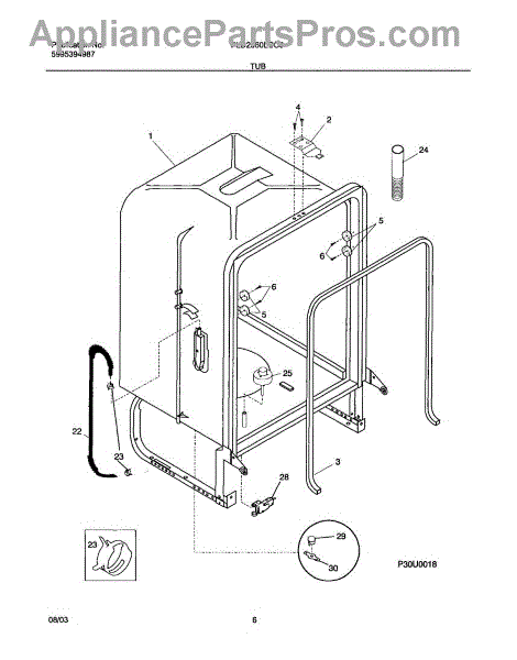 Symptoms of a faulty Dishwasher Tub Gasket include: