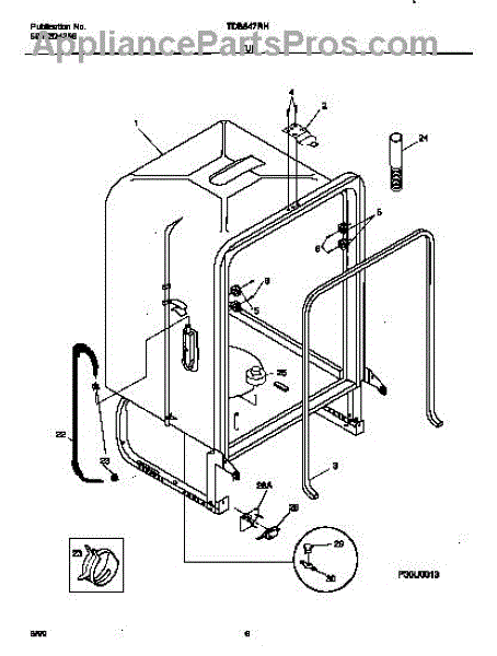 The Dishwasher Tub Gasket is an OEM replacement part for Frigidaire dishwashers. It seals the gap between the dishwasher tub and the door, preventing water leaks and ensuring efficient operation. This tub gasket is typically made of durable rubber or silicone material, designed to withstand the heat, moisture, and chemicals involved in the dishwashing process