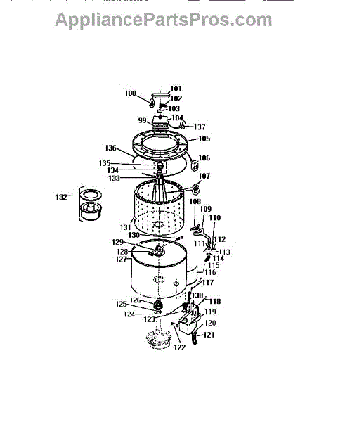 This trunnion plate secures the washer's inner basket to the drive hub/trunnion, keeping the tub centered and stable during spin. Replace it if the basket feels loose, wobbles, or makes scraping/knocking noises from the hub area. What it does:
