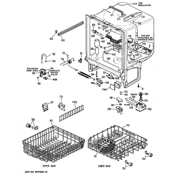 The Upper Rack is an OEM replacement part for GE dishwashers. It provides movable shelf space along the top of the dishwasher interior for washing plates, bowls, and other dishes. The shelves feature an adjustable design that accommodates various sizes and configurations of dishware. Causes of failure include normal wear and tear, accidental impacts that damage shelves or cleaning chemicals stripping away protective coatings. Symptoms of a bad upper rack can include: