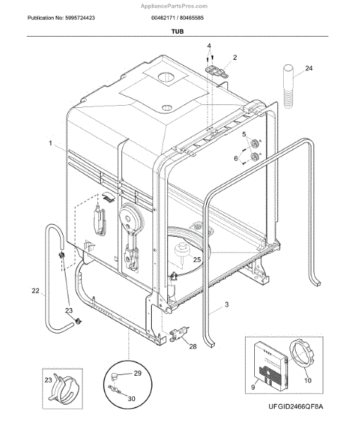The Dishwasher Tub Gasket is an OEM replacement part for Frigidaire dishwashers. It seals the gap between the dishwasher tub and the door, preventing water leaks and ensuring efficient operation. This tub gasket is typically made of durable rubber or silicone material, designed to withstand the heat, moisture, and chemicals involved in the dishwashing process