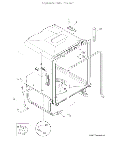 Secures dishwasher hoses to prevent leaks and water damage. Replace if loose, cracked, or leaking. Verify fit with your model number before ordering.