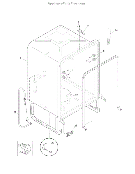 The Dishwasher Tub Gasket is an OEM replacement part for Frigidaire dishwashers. It seals the gap between the dishwasher tub and the door, preventing water leaks and ensuring efficient operation. This tub gasket is typically made of durable rubber or silicone material, designed to withstand the heat, moisture, and chemicals involved in the dishwashing process