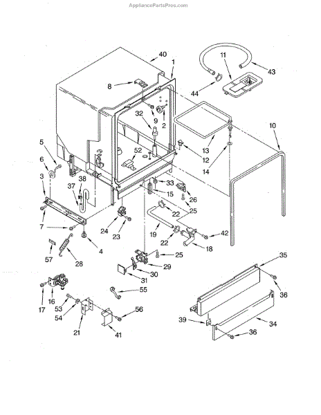 The Deflector is an OEM replacement part for Whirlpool dishwashers. Located in the lower corners of the tub, this component works to prevent leaks by keeping water from entering the cracks along the tub edges.
