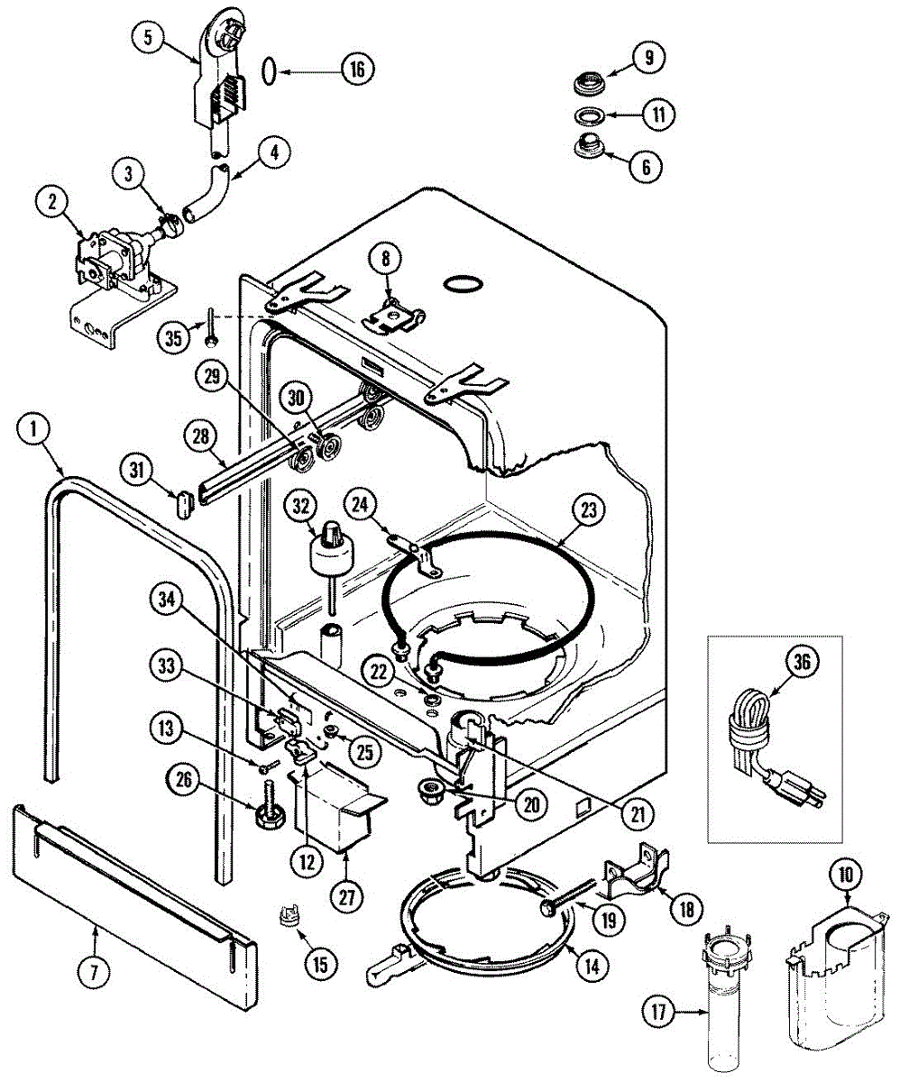 Covers the bottom front of your dishwasher cabinet. Replace if cracked, broken, or missing to keep debris out and reduce noise during operation.