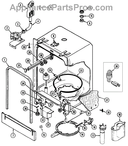 This genuine OEM part is also compatible with Maytag, KitchenAid, Jenn-Air, Amana, Magic Chef, Admiral, Norge, Roper, and Kenmore dishwasher models.