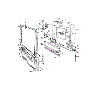 Left arm hinge component for dishwasher doors. Replaces broken, cracked, or worn hinge arms that cause door alignment issues or prevent proper closing.