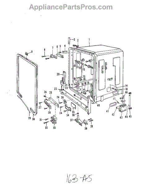 This factory screw secures appliance components to their mounting points. Replace missing, worn, or stripped hardware to restore a tight fit, proper alignment, and quieter operation across the affected assembly.