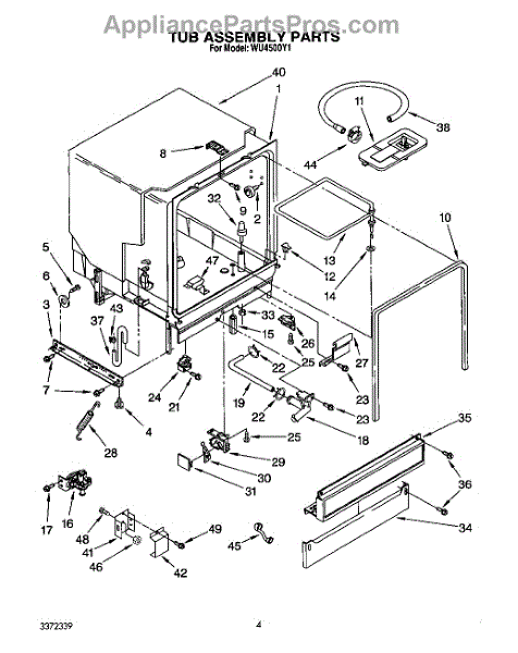 The Deflector is an OEM replacement part for Whirlpool dishwashers. Located in the lower corners of the tub, this component works to prevent leaks by keeping water from entering the cracks along the tub edges.