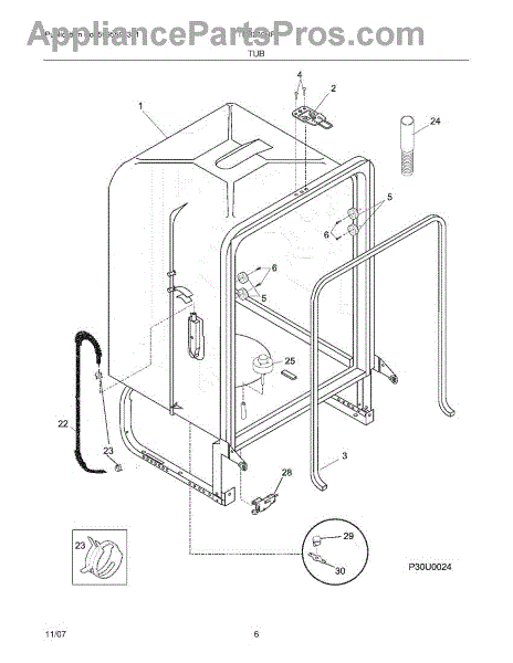 The Dishwasher Tub Gasket is an OEM replacement part for Frigidaire dishwashers. It seals the gap between the dishwasher tub and the door, preventing water leaks and ensuring efficient operation. This tub gasket is typically made of durable rubber or silicone material, designed to withstand the heat, moisture, and chemicals involved in the dishwashing process