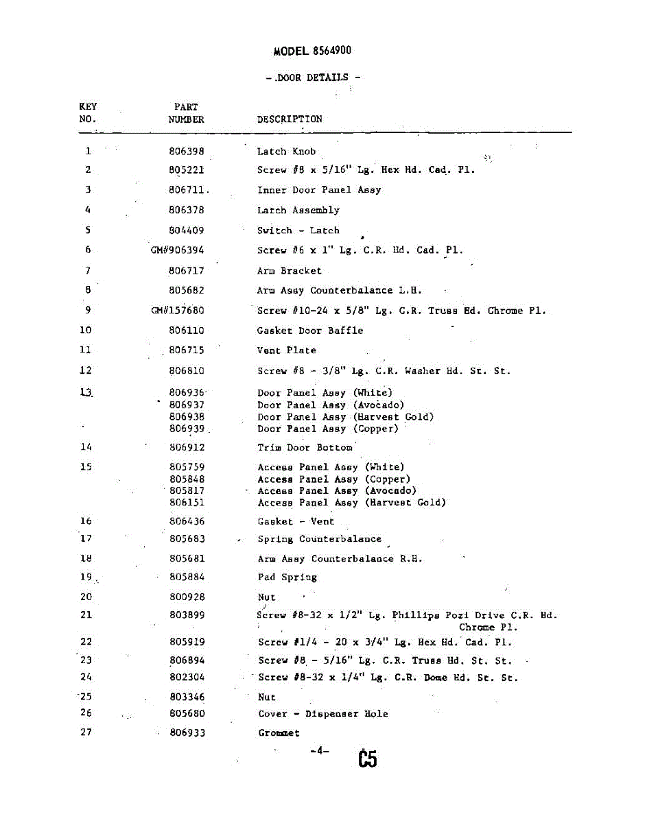 Parts for Whirlpool 8564900: 05 - Tub Parts