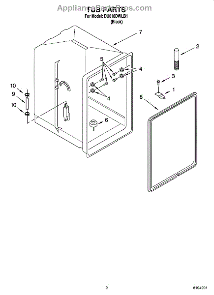 Parts for Whirlpool DU018DWLB1: 02 - Tub Parts
